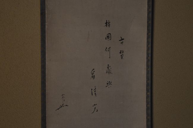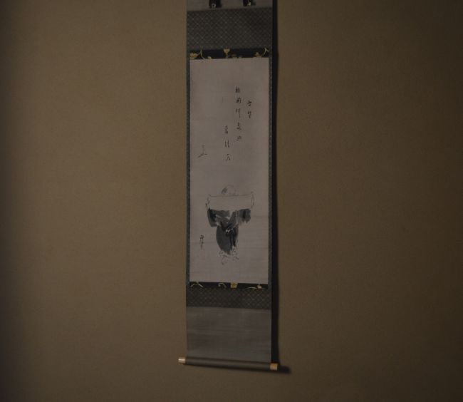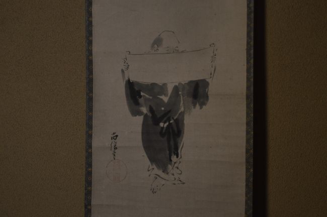 | 説明 | 狩野尚信筆「寒山読経之図」 如心斎 古賛 而妙斎 箱書 江戸時代狩野派を代表する絵師、狩野尚信による 「寒山読経之図」。 中国・唐代の高僧、寒山が経を読む姿を、 水墨の簡潔な筆致によって静かに描き出した一幅です。 余白を大きく取り、墨の濃淡のみで表現された寒山の佇まいには、世俗を離れた清澄な精神世界が感じられます。 本幅には、表千家七代家元 如心斎による古賛 「楮國何処興看清會(楮國(ちょこく)いづれの處(ところ)か、清會(せいかい)を見るを興(おこ)す」 が添えられています 意味 清らかな境地(清会)とは、いったいどこで見ることができるのだろうか。 それは特定の場所にあるのではなく、心が澄んだとき、自然と立ち現れるものである。 |