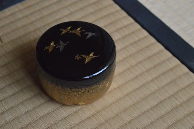 | 道具名 | 大場松魚 平文群鳥平棗 而妙斎箱書 |